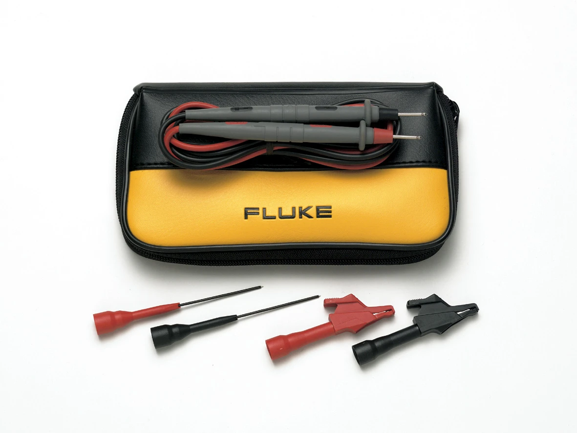 meter, test leads, safety information, registration card, manual, suppliment SW and instuction CD, report of calibration, 1x black croc clip, 1 x red croc clip