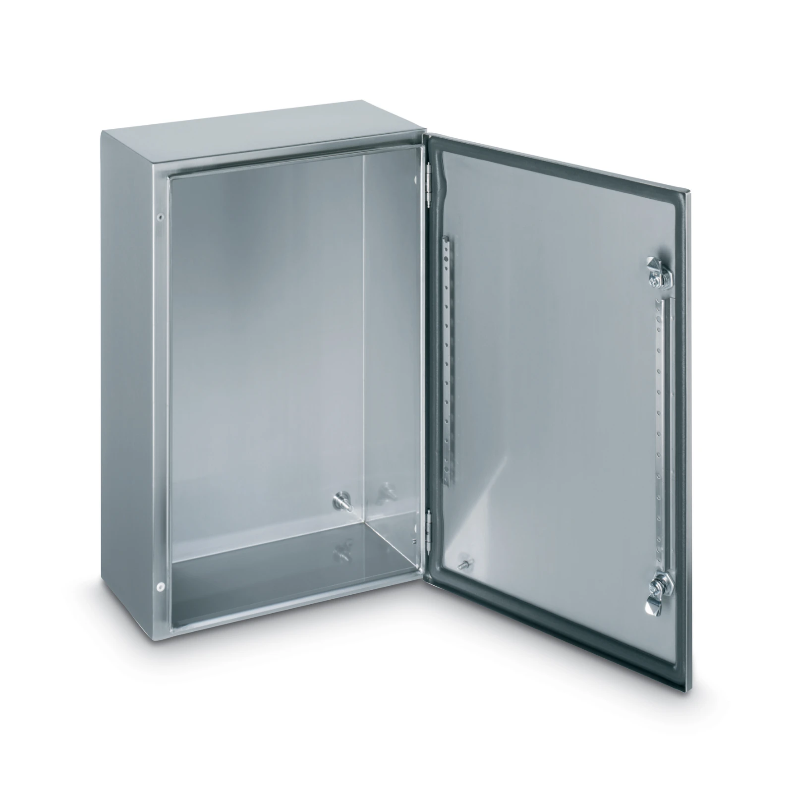 AX Wandkast, roestvaststaal 1.4301 (AISI 304), met 1 deur, 800x1200x300 mm BxHxD, met montageplaat, rondom gesloten, 3-punts sluitsysteem (dubbelbaard)